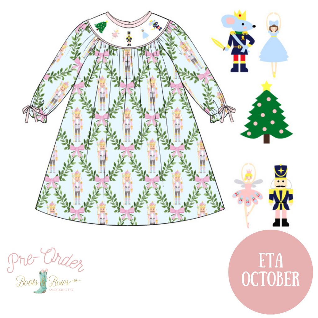 PRE-ORDER: Girls Nutcracker & Bows Smocked Dress (ETA October)