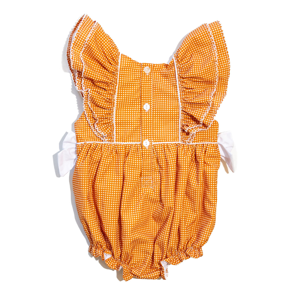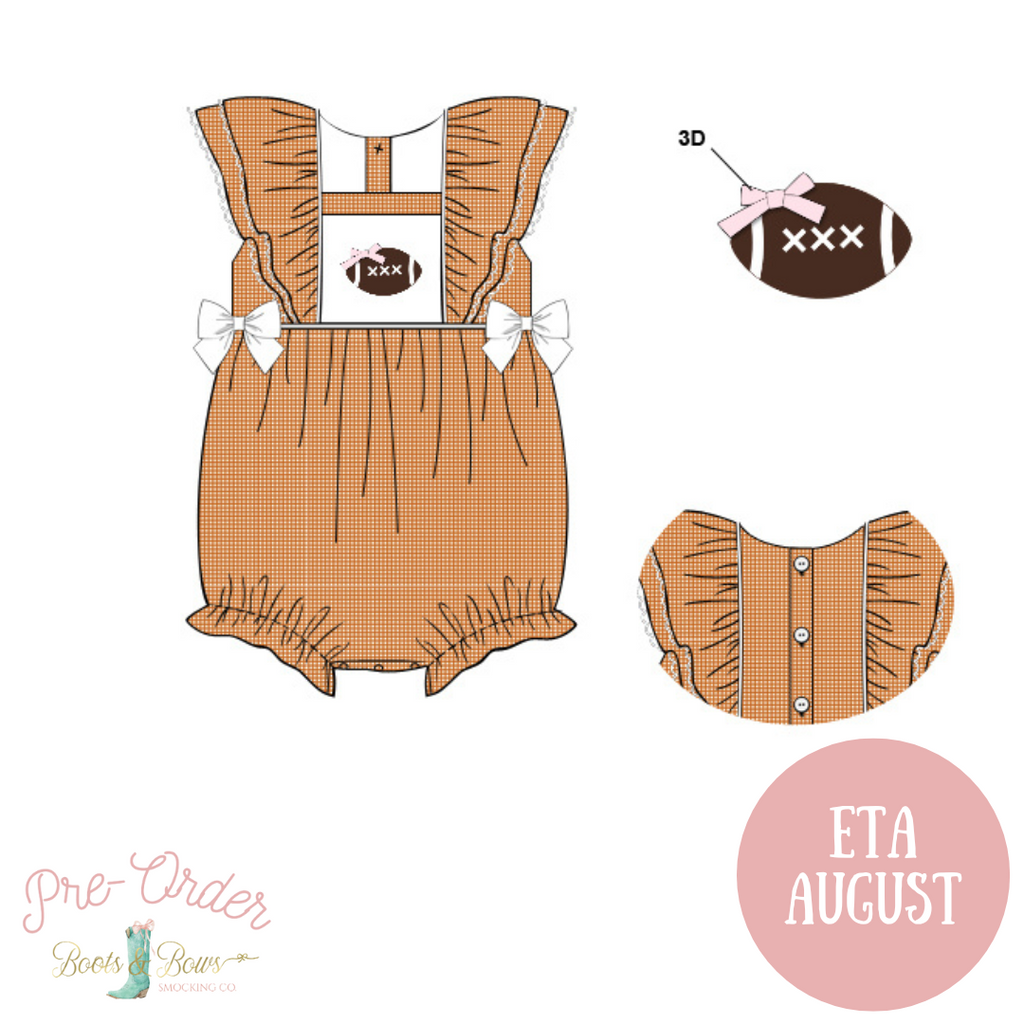Your little cheerleader will be gameday ready all fall in this adorable smocked bubble with football to root on her favorite orange team! This adorable baby girl/toddler outfit for gameday is perfect for those hot home games!