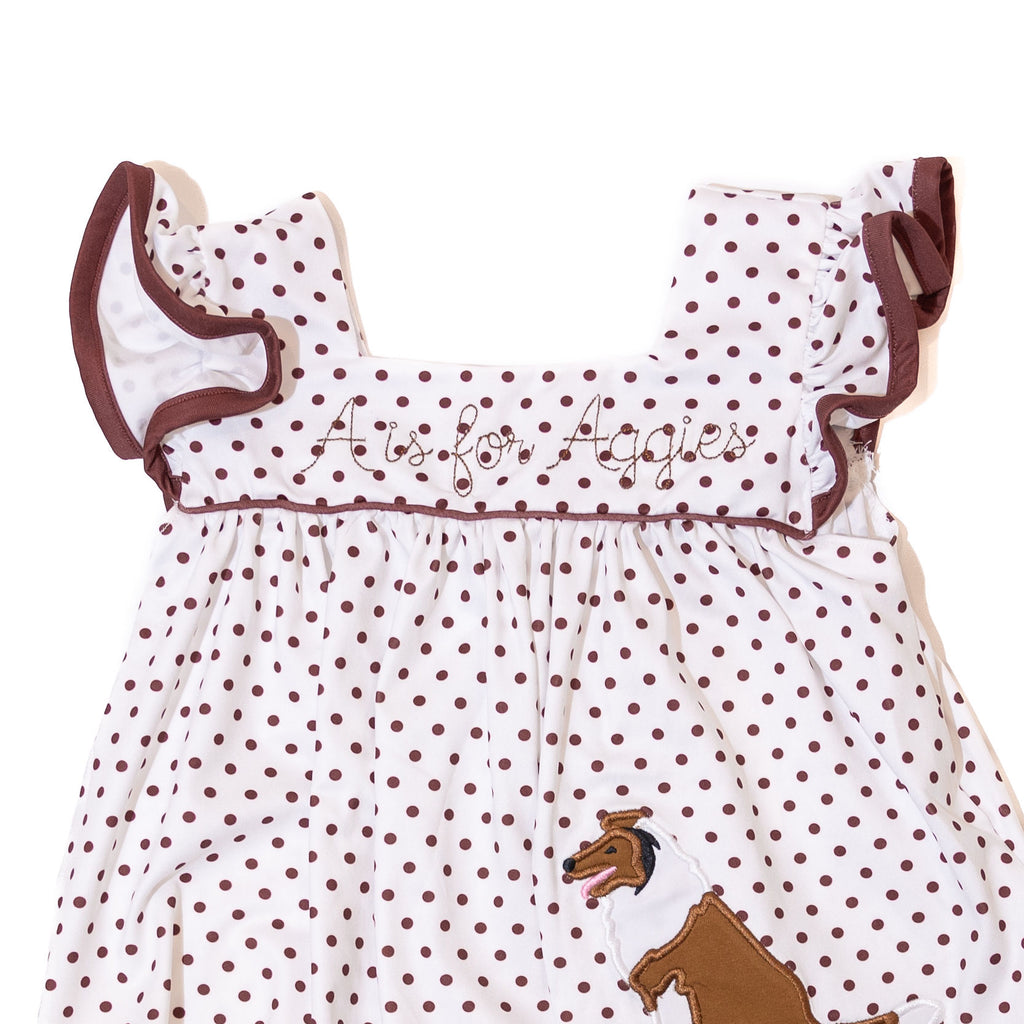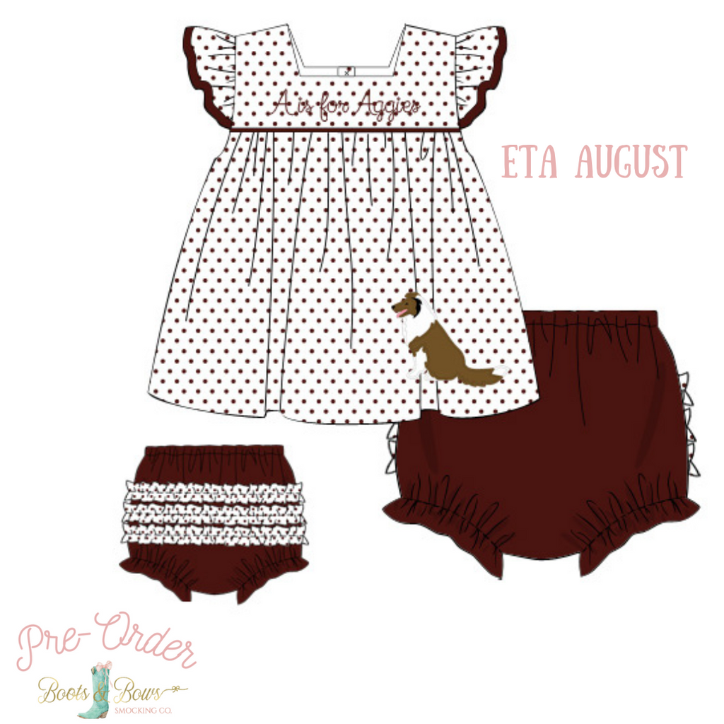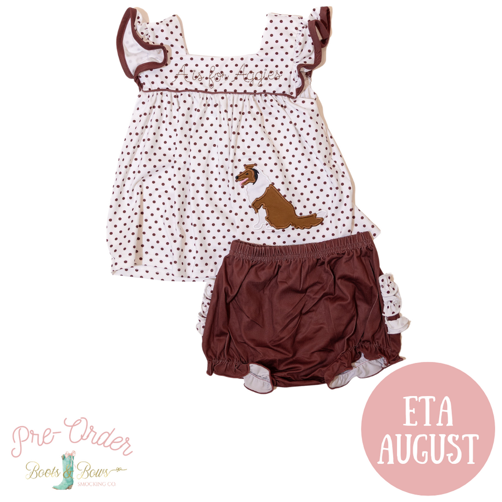 Your little cheerleader will be gameday ready all fall in this adorable diaper set to root on the Texas A&M Aggies! This adorable baby girl/toddler outfit for gameday is perfect for those hot home games! This has been one of our best sellers - everyone is loving the applique of Reveille.